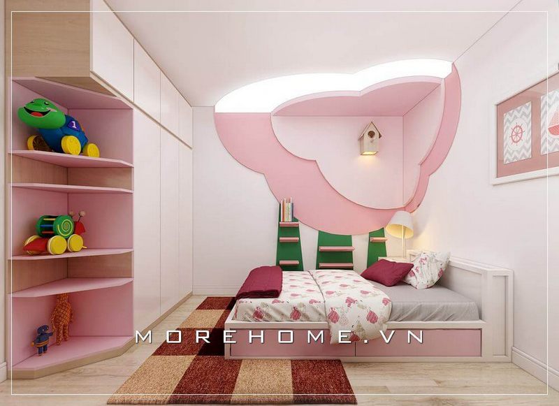 Tủ quần áo gỗ công nghiệp Acrylic màu trắng trẻ trung được thiết kế tận dụng khoảng trống giúp phòng ngủ trẻ em thêm gọn gàng hơn