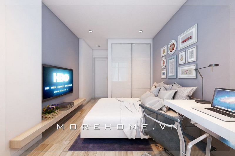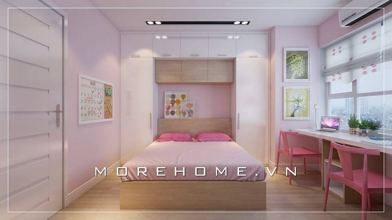 Tủ quần áo màu trắng được lựa chọn mang lại cảm giác tinh tế và liền mạch, thoáng đãng hơn cho không gian phòng ngủ nhỏ